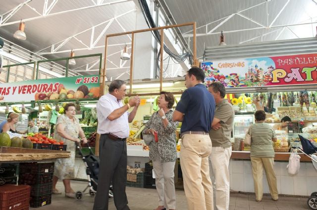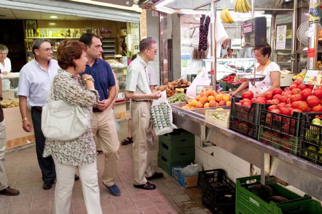 La alcaldesa ha acudido esta mañana al mercado de Santa Florentina para visitar a los vendedores afectados por el descuelgue de parte de la instalación eléctrica y supervisar los trabajos de reparación realizada por empleados municipales.