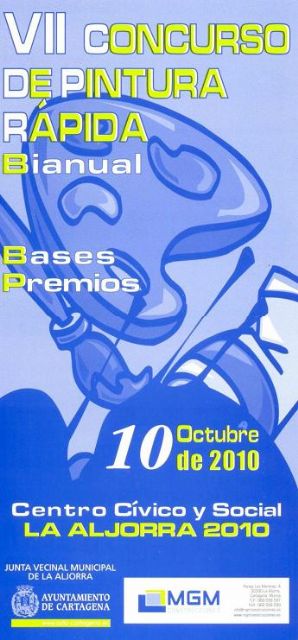 La Junta Vecinal Municipal de La Aljorra ha organizado el VII Concurso de Pintura Rápida que se celebra en la citada diputación y en la que pueden participar todas aquellas personas que lo deseen, mayores de 18 años, siendo el tema de elección libre pero referido al ámbito de la zona oeste del Campo de Cartagena, de La Aljorra a Isla Plana-La Azohía.