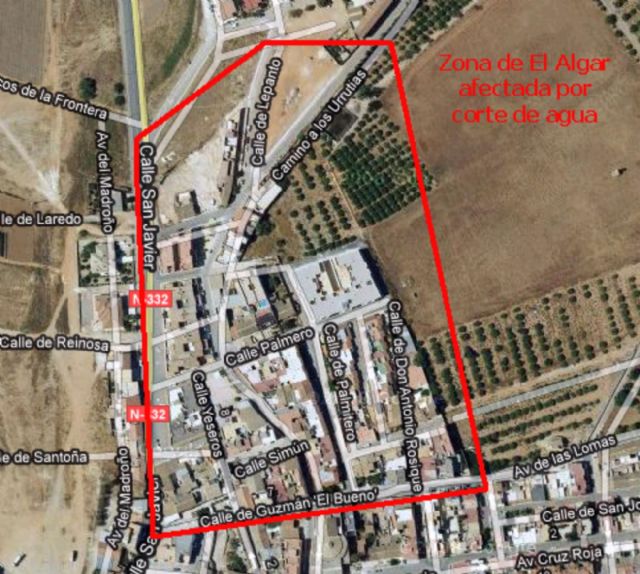 La interrupción del suministro comenzará a las 8,00 horas y se prevé una duración máxima aproxima de seis horas, afectando a las viviendas ubicadas entre las siguientes calles: San Javier, Avenida de las Lomas, Antonio Rosique, Camino de Los Urrutias, Lepanto y Maroto.