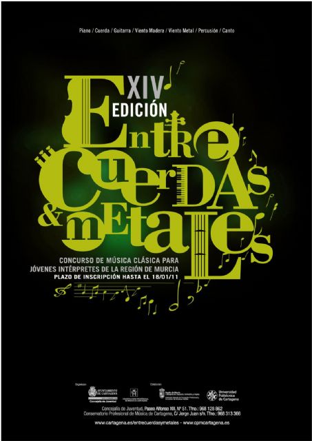 • Las audiciones tendrán lugar en el Auditorio del Conservatorio Profesional de Música de Cartagena, C/ Jorge Juan, s/n.