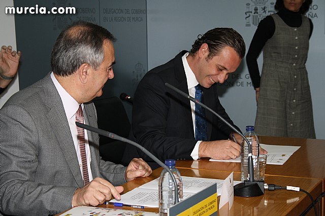 Joaquín Segado también ha firmado hoy otro convenio con la Consejería de Obras Públicas y el Ministerio de Fomento, para acordar la financiación del Área de Urbanización Prioritaria de suelo del Sector Buenos Aires en Molinos Marfagones, con una edificabilidad residencial de 45.969 metros cuadrados en los que se construirán 504 viviendas protegidas.