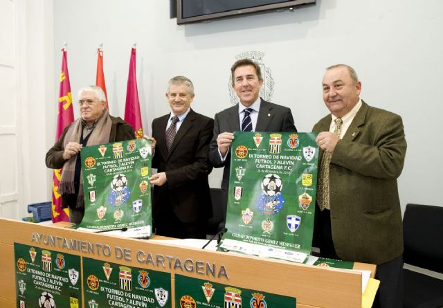El 26 de diciembre, la Ciudad Deportiva Gómez Meseguer, situada en el Polígono Industrial Cabezo Beaza, acoge el IX Torneo de Navidad Futbol 7 Alevín Cartagena F.C., evento deportivo que han presentado hoy el concejal de Deportes, Alonso Gómez, el presidente del Cartagena Futbol Club, José Gómez Meseguer, el presidente de la Federación Murciana de Fútbol, José Miguel Monje, el vicepresidente segundo del Cartagena F.C., Nicolás López Cuadrado, y el director de la escuela de fútbol de la entidad, Leo Gómez.