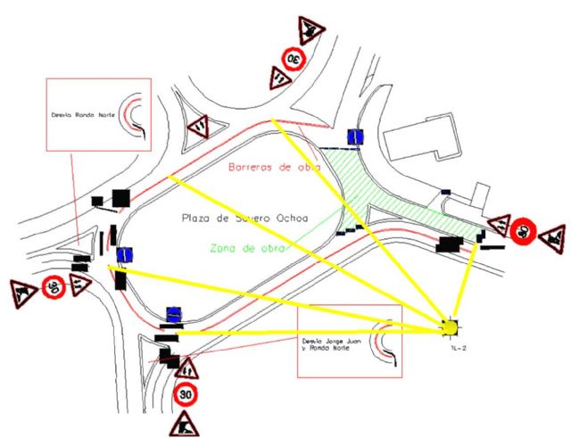 De este modo, desde primera hora de la mañana del lunes la Policía Local comenzará a señalizar el corte de tráfico que afecta al tramo de la estación de servicio, tanto en la propia rotonda, donde los dos carriles unidireccionales actuales desaparecen y se convierten en uno de entrada y otro de salida, como con carteles en los cruces y rotondas cercanos (Reina Victoria, Ronda Ciudad de la Unión, Juan Fernández), en los que se informará sobre itinerarios alternativos para evitar que los vehículos colapsen la plaza. El corte se hará efectivo a partir de mediodía.