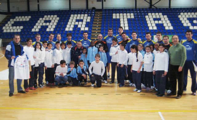 Los jugadores del Reale Cartagena recibieron la visita en el Pabellón Wsell de Guimbarda, de los alumnos del Colegio "Patronato Sagrado Corazón", dentro del Programa ADE (Acercamiento al Deporte de Élite) de la Concejalía de Deportes de Cartagena.