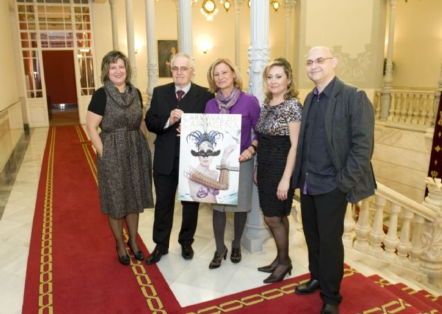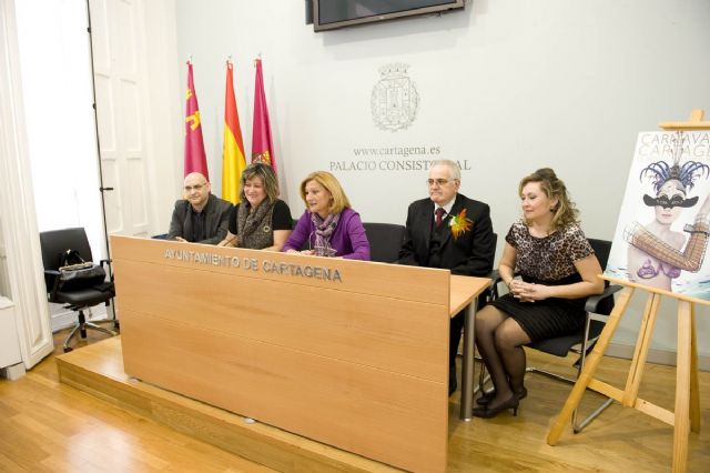 La concejala de Festejos, Florentina García Vargas, y la presidenta de la Federación de Carnaval de Cartagena, Carmen Sánchez, han sido las encargadas de mostrar la imagen del cartel del Carnaval 2011 titulado Cartagena se viste de Carnaval, obra del creativo y diseñador gráfico Cristóbal Aguiló que, en sus propias palabras, representa a Cartagena en la figura de una mujer vestida con los elementos arquitectónicos más representativos de la ciudad (Palacio Consistorial, Ascensor Panorámico) y, como no, el mar siempre presente.