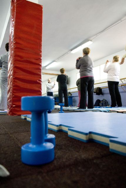Las clases se dividen dos grupos de 25 personas cada uno distribuidos según las necesidades específicas de los mayores, y realizan media hora de gimnasia con música que puede incluir ejercicios de step no aeróbicos e incluso pesas para el fortalecimiento de los músculos.
