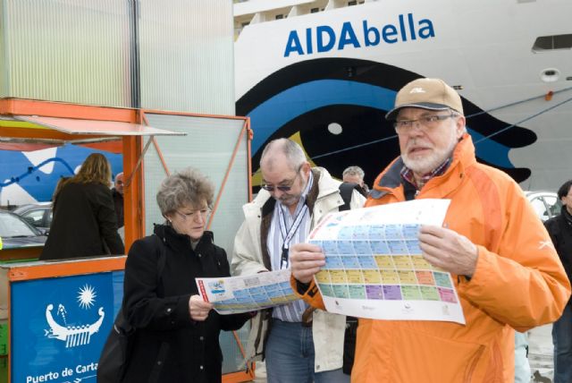 El Aidabella es el primero del total de 36 cruceros que llegarán a Cartagena hasta el mes de junio y que suponen 5 embarcaciones más que en el mismo periodo del año pasado. En total, son 35.835 cruceristas los que visitarán la ciudad en esas fechas.