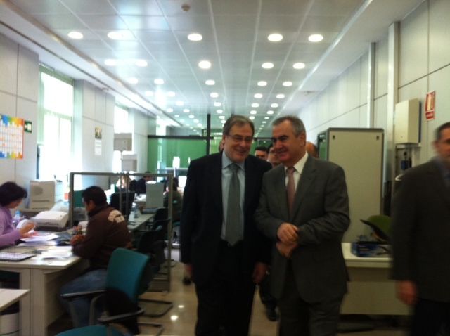 El delegado del Gobierno, Rafael González Tovar, y el director provincial del INSS, Francisco Sánchez Sánchez, han visitado esta mañana las obras de ampliación del Centro de Atención e Información de la Seguridad Social (CAISS) de Cartagena.