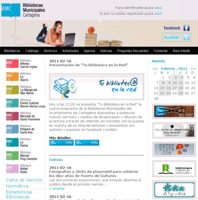 Avalado por el éxito de visitas a la web de bibliotecas municipales, el Ayuntamiento incrementa su presencia en internet subiéndose al carro de las redes sociales, a través de dos blogs y sendas páginas en facebook y twitter