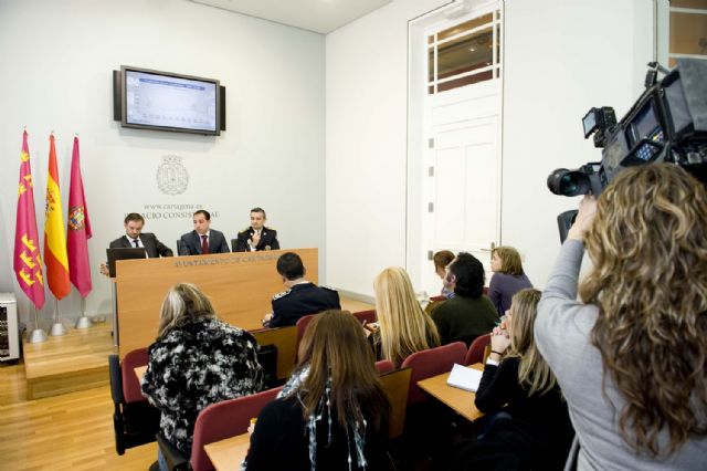Los responsables de la seguridad vial en Cartagena, como son el concejal de Seguridad Ciudadana, Javier Herrero, el director general de Seguridad, Carlos Nieto, y el Inspector jefe de la Policía Local, Manuel Asensio, han presentado hoy la Memoria de Accidentalidad de 2010, un informe que señala un ligero descenso en la siniestralidad en las vías del municipio y la imprudencia, como principal causa de accidentes.