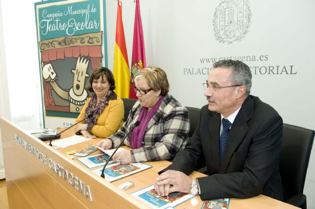 La concejala de Educación, Josefa Maroto, la directora del Ãrea Social y Cultural de la Fundación Cajamar, Marcela Orozco, y el director de zona de Cajamar en Cartagena, Pedro Antonio Vidal, han presidido hoy el acto de presentación de la primera Campaña Municipal de Teatro Escolar, un complemento al programa didáctico pedagógico que la Concejalía viene desarrollando con los centros educativos.