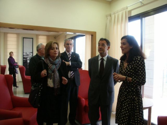 El Polígono Residencial Santa ha estrenado oficialmente esta mañana la nueva Residencia para mayores Nova Santa Ana, que abrió sus puertas el pasado 1 de febrero, gracias a la iniciativa privada de dos empresarios cartageneros, a la que se ha sumado un concierto con la Comunidad a través del Instituto Murciano de Acción Social (IMAS). Al acto de inauguración han acudido el consejero de Política Social, Joaquín Bascuñana, el concejal de Atención Social, Antonio Calderón, y la directora del IMAS, María Isabel Sola, junto a la directora de la nueva Residencia, Juana María Rocamora, y los empresarios Francisco García Méndez y Alfonso Fernández.