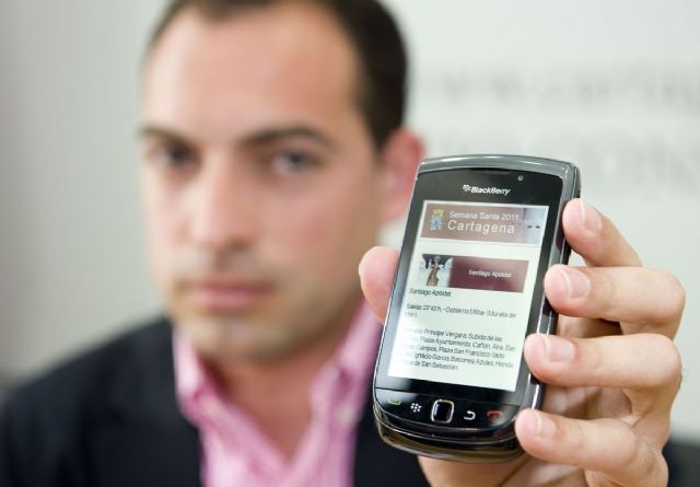 El concejal de Turismo, Javier Herrero, ha presentado hoy la nueva aplicación que ha puesto en marcha el Ayuntamiento de Cartagena, una guía electrónica de Semana Santa a la que se puede acceder a través de los teléfonos móviles y una manera más de adaptarnos a las nuevas tecnologías que priman hoy en día en la sociedad y nos permiten llegar más directamente tanto a los ciudadanos, que ya conocen nuestras procesiones, como a los turistas que visitarán la ciudad en breves fechas.