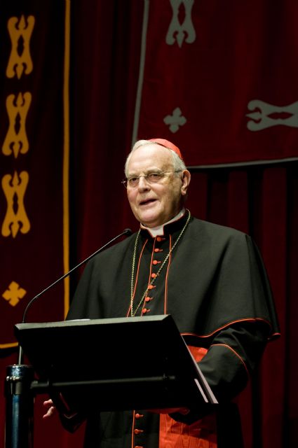 El cardenal Carlos Amigo ha reivindicado a los Cuatro Santos como los primeros procesionistas cartageneros, asignando a cada uno de ellos a las cofradías de la ciudad, en el pregón que ha pronunciado a mediodía de hoy en el Nuevo Teatro Circo.