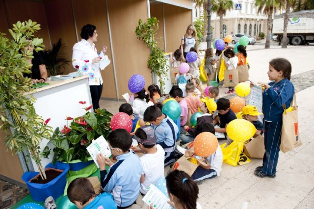 Varios grupos de escolares han sido los primeros en recorrer los diez stands en los que han ido recibiendo consejos para cuidar el medio ambiente. Los más pequeños han participado en la creación de un cómic bajo el lema Colorea tu medio ambiente en el que, para probar sus conocimientos, han pintado cada contenedor con su color correspondiente, según separe vidrio, plástico, papel-cartón y basura orgánica. Y tú ¿conoces los colores?, será la pregunta que hagan a sus padres al llegar a casa.
