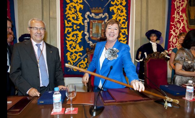 Pilar Barreiro ha sido elegida por quinta vez consecutiva alcaldesa de Cartagena, en el pleno constitutivo de la corporación que se ha celebrado este mediodía en el salón de plenos del Palacio Consistorial.