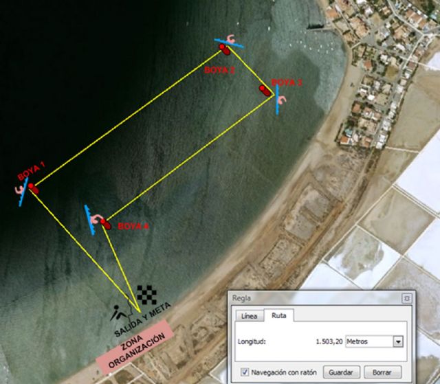 La salida para las categorías de menores será a las 10,30 horas, y recorrerán 600 metros en una distancia lineal desde la orilla de la playa. Para el resto de categorías la salida será a las 11,30 horas, y se recorrerán 1.500 metros en un circuito bordeando cuatro boyas en paralelo a la playa. Todos los participantes deberán estar presentes en la zona de salida 30 minutos antes del comienzo de la prueba.
