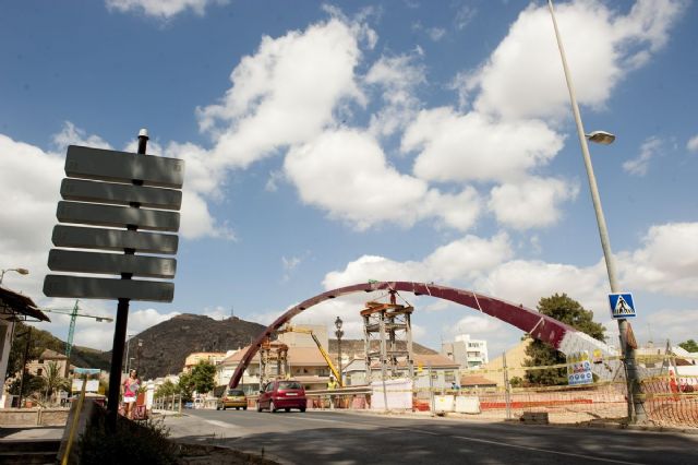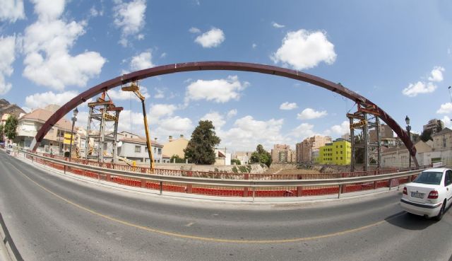Una vez retiradas las torres y las tablas que sujetan el arco, el lunes se procederán a la colocación de las péndolas que cuelgan del mismo y quedan enganchadas al tablero.