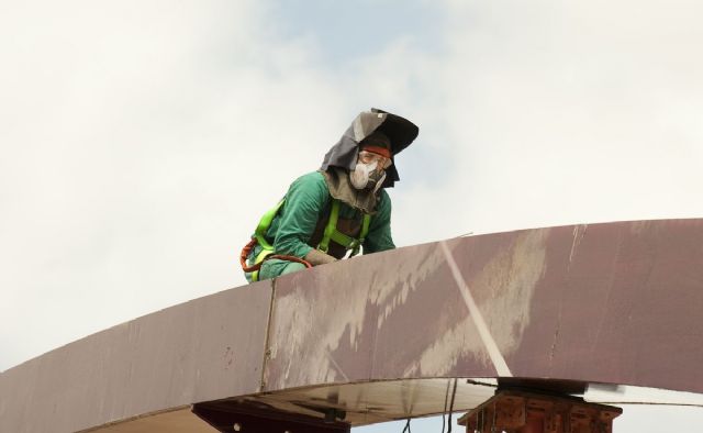 Los operarios que trabajan en la remodelación de esta infraestructura soldarán entre hoy y mañana las piezas que conforman el arco, el viernes se retirarán las torres y la semana próxima ya se podrá ver su silueta al aire