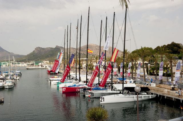La flota de barcos participantes en la Audi Med Cup ya se encuentra en el puerto de Cartagena. Entre ellos, un barco australiano, país que participa por primera vez en el Circuito, como ha explicado Nacho Postigo, director técnico de la Audi MedCup.