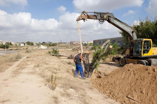El resto de ficus irán llegando en los próximos días y la semana que viene, mientras que los operarios continuan acondicionado el terreno de la prolongación de la Vía Verde de Barrio Peral para facilitar el transplantado.