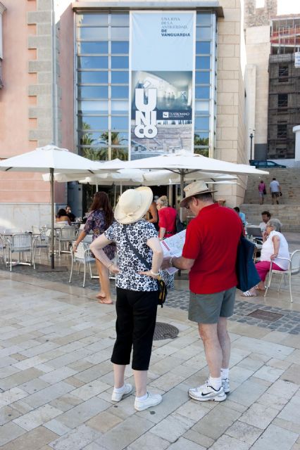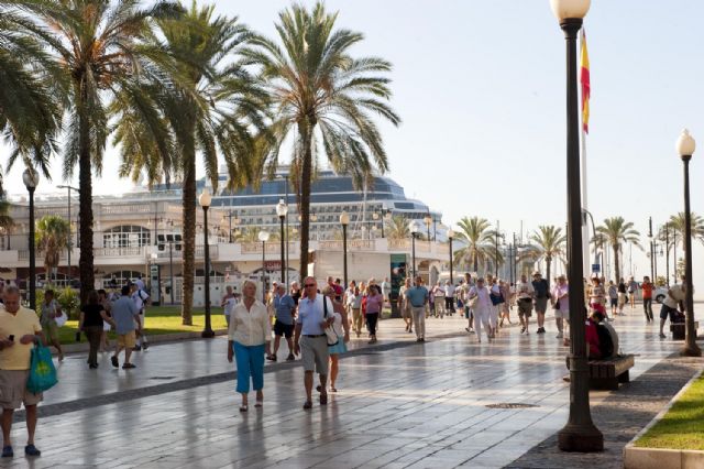 Durante su escala en Cartagena, los turistas han aprovechado el buen tiempo para pasear por las calles y hacer sus compras, sentarse en las terrazas y bares del centro y visitar los puntos turísticos como el Teatro Romano, el Palacio Consistorial y la calle Mayor. Como es habitual, han sido recibidos a pie de escalerilla por un Punto de Información turística del Ayuntamiento de Cartagena.