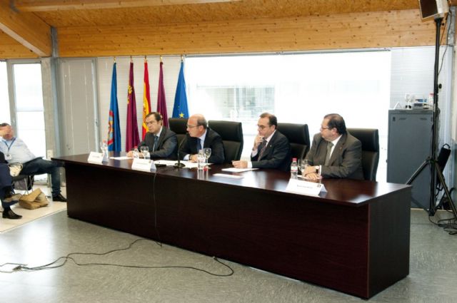 Félix Faura, rector de la UPCT, Nicolás Ãngel Bernal, segundo teniente de alcalde del Ayuntamiento de Cartagena, Juan Hernández Albarracín, director del INFO, y José García Gómez, presidente del Centro Tecnológico Nacional de la Conserva y la Alimentación (CTC), han inaugurado esta mañana las jornadas que se celebran en la facultad de Ciencias de la Empresa de la UPCT, edificio del antiguo CIM.