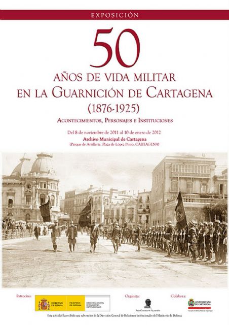 Título de la exposición: 50 años de vida militar en la Guarnición de Cartagena (1876-1925). Acontecimientos, personajes e instituciones.Lugar: Archivo Municipal de Cartagena (Plaza de López Pinto, s/n. CARTAGENA, España)Fechas: Del 8 de noviembre de 2011 al 10 de enero de 2012.Inauguración: martes 8 de noviembre de 2011 (12:30 h.).Horario de visita:- Lunes y viernes, de 9:00 a 13:45 h.- Martes, miércoles y jueves, de 9:00 a 13:45 h. y de 17:00 a 19:45 h.- Cerrado sábados, domingos y días festivos.Solicitud de guía para visitas colectivas: 968505883 - 636545906.Organiza: Aula Comandante Villamartín.Patrocina: Dirección General de Relaciones Institucionales (Ministerio de Defensa).Colabora: Concejalía de Cultura. Ayuntamiento de Cartagena.