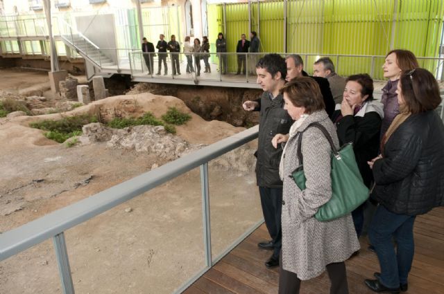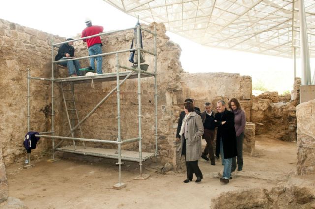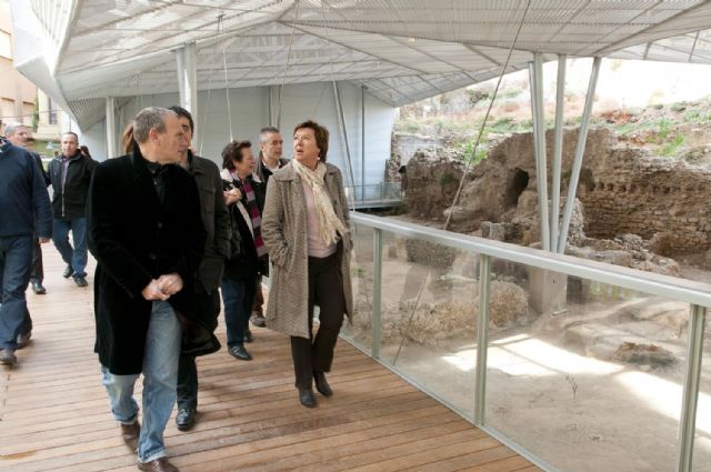 La alcaldesa de Cartagena, Pilar Barreiro, y el consejero de Cultura y Turismo, Pedro Alberto Cruz, han visitado esta mañana las obras de los restos romanos que se encuentran en la ladera norte del cerro del Molinete, y cuya cubierta ya está completamente terminada.