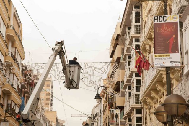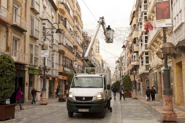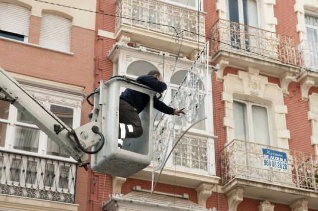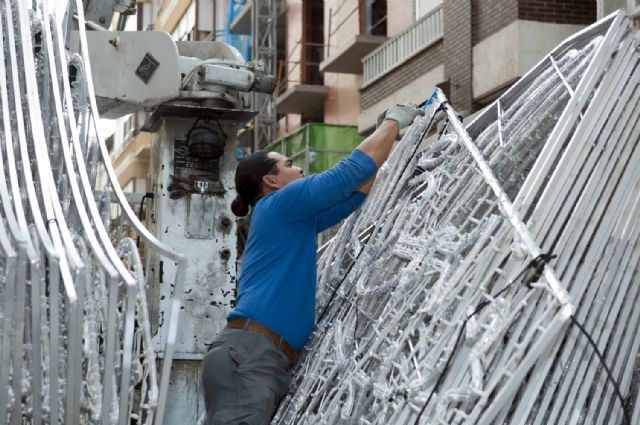 La empresa Iluminaciones UMIA ya está colocando las primeras luces de Navidad en las principales calles del centro de la ciudad. El encendido será el próximo 16 de diciembre, coincidiendo con el inicio de la porgramación navideña.
