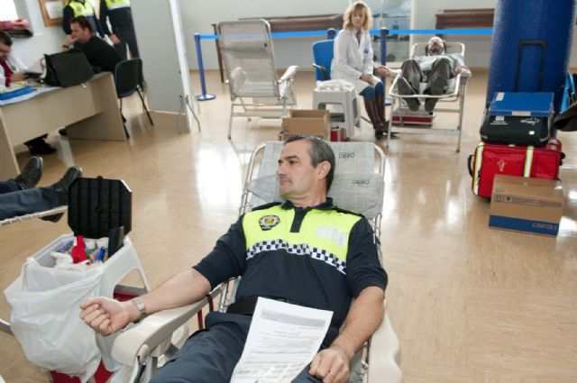 Bomberos, policías locales y personal administrativo del Parque de Seguridad han aportado esta mañana su granito de arena de cara a estas navidades participando en una extracción solidaria de sangre, Tu sangre siempre hace falta.