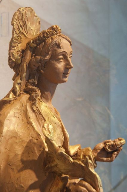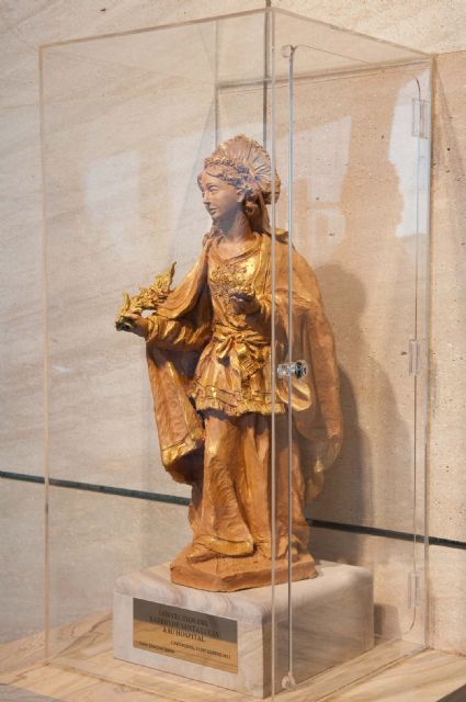 El hospital de Santa Lucía ya está al completo. La consejera de Sanidad y Política Social, María Ángeles Palacios y el concejal de Sanidad del Ayuntamiento de Cartagena, Nicolás Ángel Bernal han inaugurado esta mañana la escultura de Santa Lucía, obra del artista cartagenero Juan José Quirós.