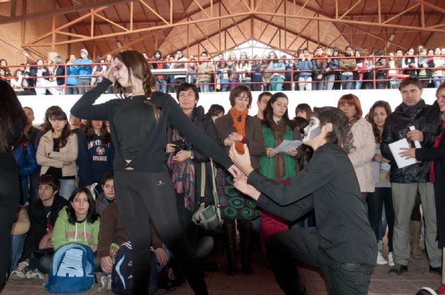 No al maltrato a la mujer. Con este mensaje y una serie de representaciones teatrales, los alumnos del bachillerato de arte del IES Ben Arabí culminan la semana de actividades por el Día Internacional de los Derechos Humanos.