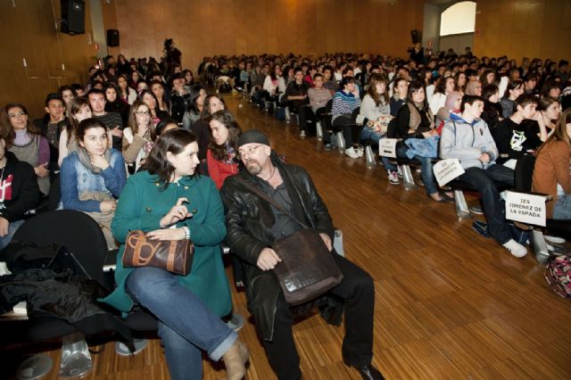 El autor de Pero sigo siendo el rey, presenta su libro ante más de 600 jóvenes y alaba la iniciativa del Ayuntamiento por incitar a los estudiantes a leer y a interesarse también por la escritura