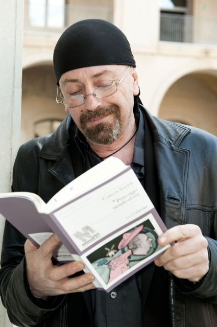 Con un pañuelo negro anudado a la cabeza, a modo de pirata y con un cierto aire de personaje salido de una novela negra. Ésta ha sido la tarjeta de presentación del escritor argentino Carlos Salem, amante de ese tipo de literatura, autor de Pero sigo siendo el rey y primero de los finalistas del Premio Mandarache 2012 en visitar Cartagena.