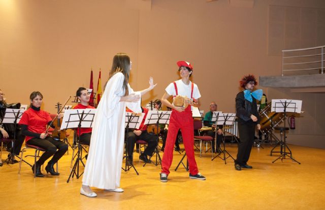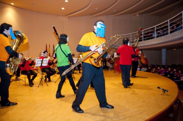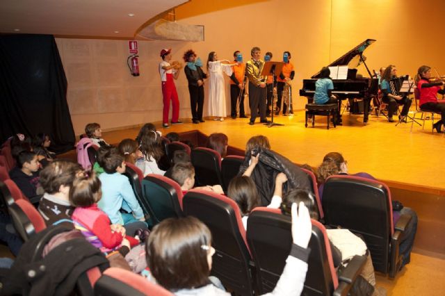 Este proyecto nace con el objetivo principal de acercar la música orquestal a los niños en edad escolar, y mostrar la variedad instrumental a través de las diferentes familias de instrumentos que existen en una orquesta. En él han participado profesores de diversos conservatorios, entre ellos el de Cartagena y Cieza, así como alumnos de la escuela municipal de teatro de Cartagena, que con ilusión y energía han transmitido toda la belleza que supone enseñar y aprender a través de la música.