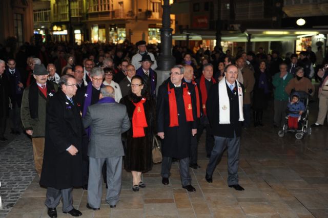 Los cuatro hermanos mayores de las cofradías, cofrades y un centenar de cartageneros no han querido perderse el acto que pregona el inicio de la Cuaresma y en el que la primera autoridad municipal entrega a la Junta de Cofradías un cheque de ayuda a las procesiones. Este año, la subvención municipal ha sido de 183.060 euros, un 10% menos que en 2011.