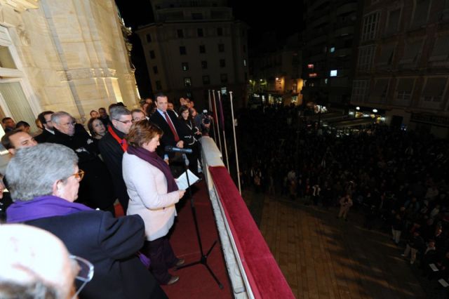 Durante el acto, que se ha desarrollado en el balcón del Palacio Consistorial, la alcaldesa se ha mostrado satisfecha del poder de convocatoria que tiene para el cartagenero la Llamada de Semana Santa: No hay anuncio tan esperado que convoque tanta expectación como el de esta noche. Los cofrades han renovado su compromiso con la tradición y asumen la responsabilidad de echar las procesiones a la calle. El eco de la Llamada llegará hasta el lugar más alejado donde esté un cartagenero.