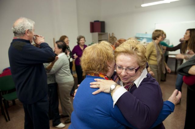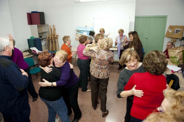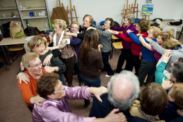 La idea del taller es conseguir que los alumnos se rían y olviden sus problemas gracias a varias actividades divertidas. Muchos jubilados no podían contener las carcajadas cuando les ha tocado bailar y abrazar al compañero que llevara una prenda de ropa de un color determinado o cuando la monitora les ha puesto una música de striptease para que bailaran como quisieran.