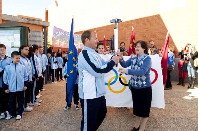 La llama olímpica ya está en Franciscanos. Alumnos y profesores del colegio San Vicente de Paúl han sido los encargados de pasar el testigo esta mañana a los docentes de dicho centro educativo, ante la presencia del concejal de Deportes del Ayuntamiento de Cartagena, José Cabezos, que ha sido el encargado de leer el manifiesto de los valores olímpicos.