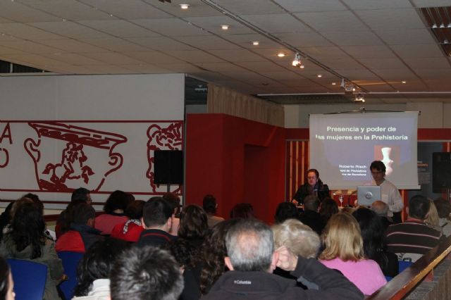 La primera de las conferencias, Presencia de las mujeres en la Prehistoria, corrió a cargo del doctor Roberto Risch, Profesor Titular del Departamento de Prehistoria de la Universidad Autónoma de Barcelona. Forma parte del grupo de investigación Arqueoecologia Social Mediterrània, que tiene como objetivo principal la reconstrucción de la dinámica social, económica y ecológica de las sociedades que poblaron la cuenca occidental del Mediterráneo a lo largo de la prehistoria reciente, es decir, entre el III y el I milenio antes de nuestra era, centrándose concretamente en el sudeste de la Península Ibérica y las Islas Baleares.
