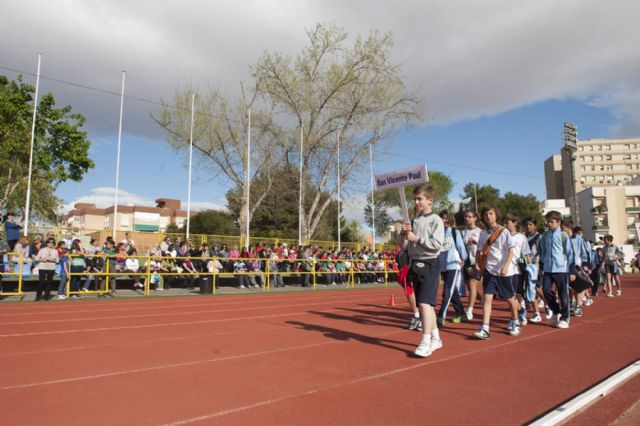 El concejal de Deportes, José Cabezos Navarro, y el presidente de la Federación de Atletismo de la Región de Murcia, de Atletismo, Rosendo Berengüi Gil, han presidido la inauguración de los actos donde han presenciado el desfile de todos los centros educativos, el izado de la bandera olímpica, el juramento olímpico por una atleta escolar y la llegada de la antorcha y su encendido en el pebetero por parte de deportistas de la especialidad. A continuación, Cabezos ha dado por inaugurado el OLIMPIADE 2012. En la clausura de la actividad, ambas autoridades han entregado un obsequio de recuerdo a cada centro escolar por su participación, agradeciendo la asistencia a todos los presentes.