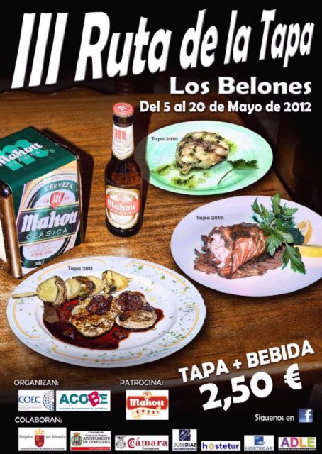 La asociación de comerciantes de Los Belones ha puesto en marcha la III Ruta de la Tapa, que se celebra del 5 al 20 de mayo, contando con la colaboración del Ayuntamiento, COEC, Cámara de Comercio, la Asociación de Jóvenes Empresarios y HOSTECAR.