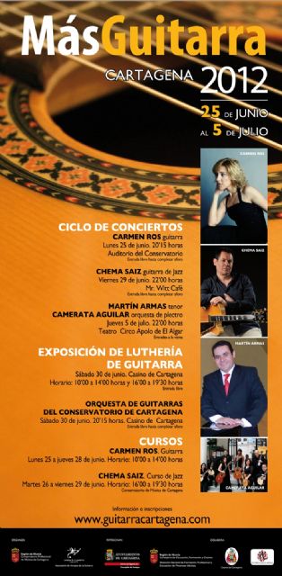 La Semana de la Guitarra Clásica regresa a Cartagena con más fuerza que nunca. Un ciclo de conciertos, una exposición de Luthería y cursos es lo que se ha programado en el ciclo Más Guitarra que se desarrollará del 25 de junio al 5 de julio.