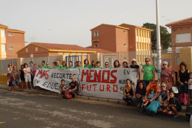 Los socialistas de la zona han acompañado a los profesores, padres y madres con alumnos en el colegio público de Los Belones coincidiendo con la reanudación de sus manifestaciones todos los martes antes del inicio de las clases.