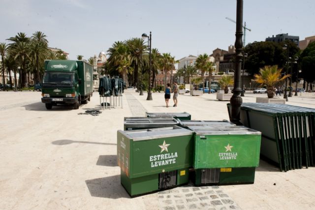 La instalación de los 19 puestos que abrirán sus puertas entre Héroes de Cavite y el muelle Alfonso XII, así como la pantalla gigante para ver la Eurocopa, está prácticamente lista para su inauguración, que tendrá lugar el miércoles por la tarde
