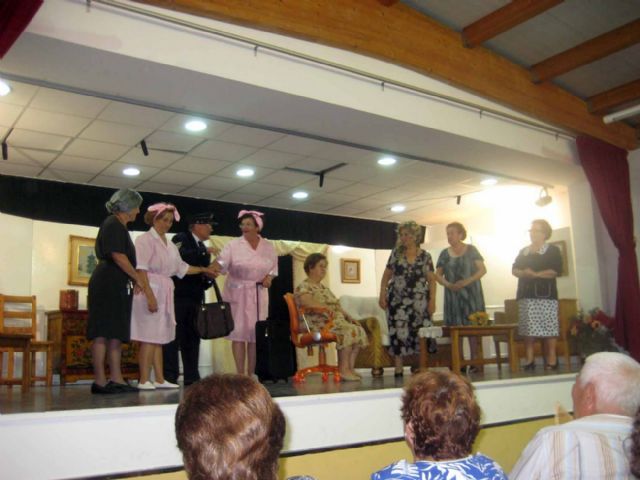 Los Grupos de Teatro de Mayores que han participado en estos talleres son el de San José Obrero, con la obra El fresco del fuego; Amanecer, de Los Dolores, con La plancha y las cosas del querer; Molinos Marfagones, con La mujer; Aljorra la Bella, con Escuela de millonarias; Santa Ana, con Ir por lana y salir trasquilado y El aula de tócame Roque; y el veterano grupo de Sainete, con el montaje teatral de Nosotros, ellas y el duende.