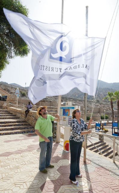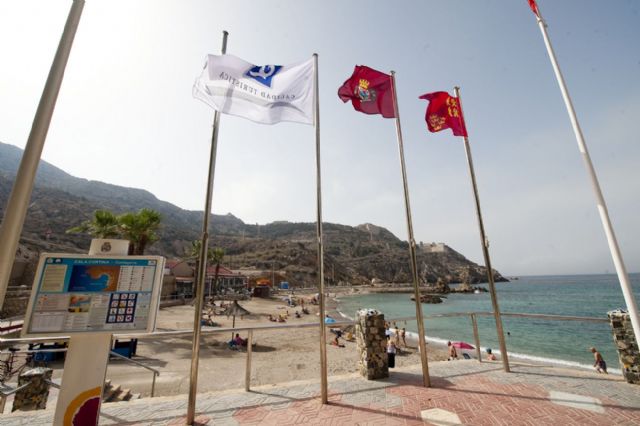 Las once banderas con la Q de calidad turística ya ondean en el litoral cartagenero