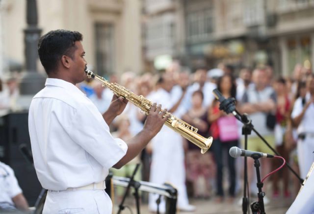 El Ayuntamiento colaboró con la celebración de este concierto, ofrecido a las puertas del Palacio Consistorial, una actuación de en torno a una hora que fue un regalo de la Marina India a la ciudad.