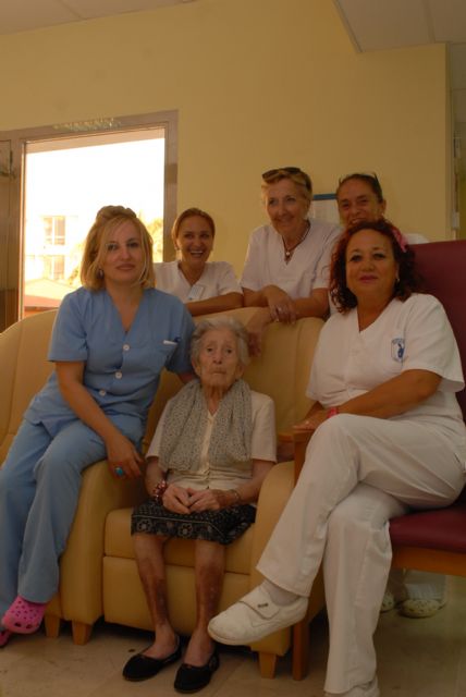 Eulalia Andreu Casanova, recibió la visita de muchos de sus familiares más cercanos convocados por la celebración de sus 102 aniversario en la Residencia Virgen del Mar (Mensajeros de La Paz) en el cartagenero barrio de San Antón.